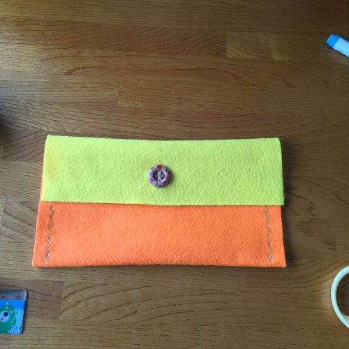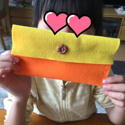小3手芸。フェルトで小物入れを作る。 - 今日これ作りました。