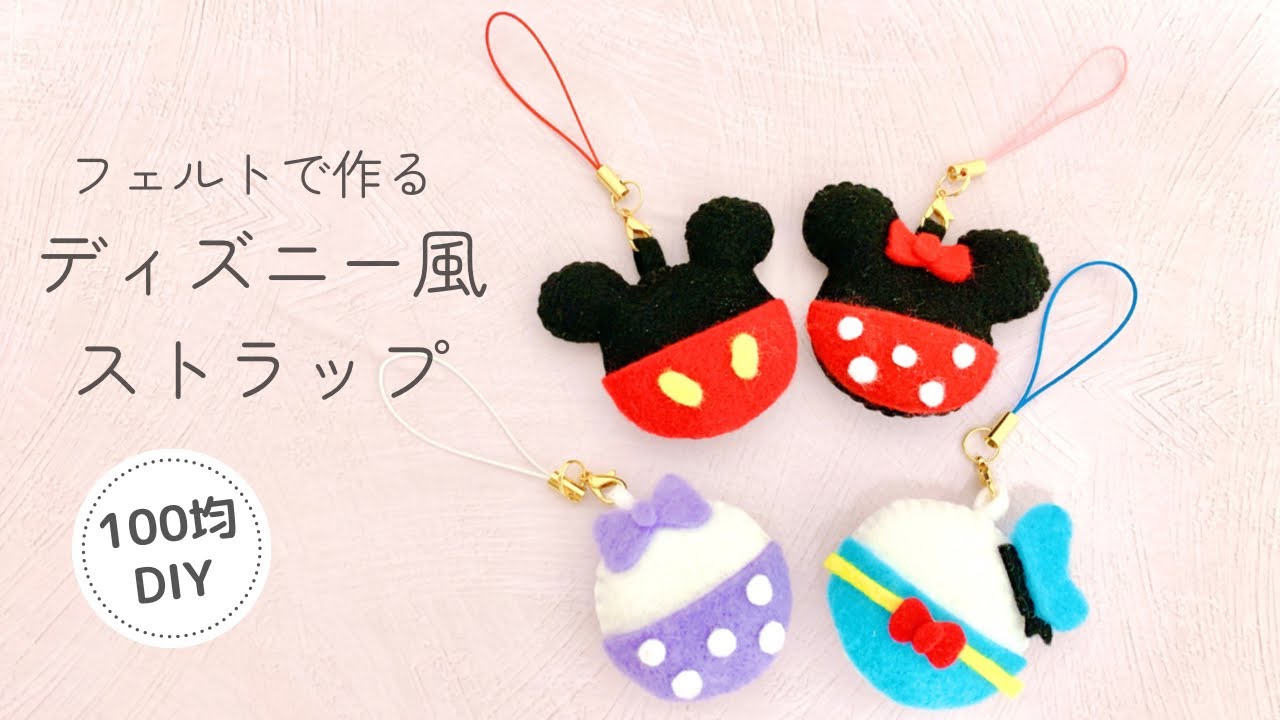 簡単! フェルトで手作りディズニーキャラストラップ 型紙不要 簡単 100均DIY felt handmade craft。