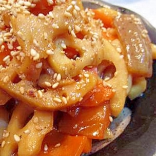 れんこんの甘味噌和え 濃厚な甘味噌味でごはんが進む。