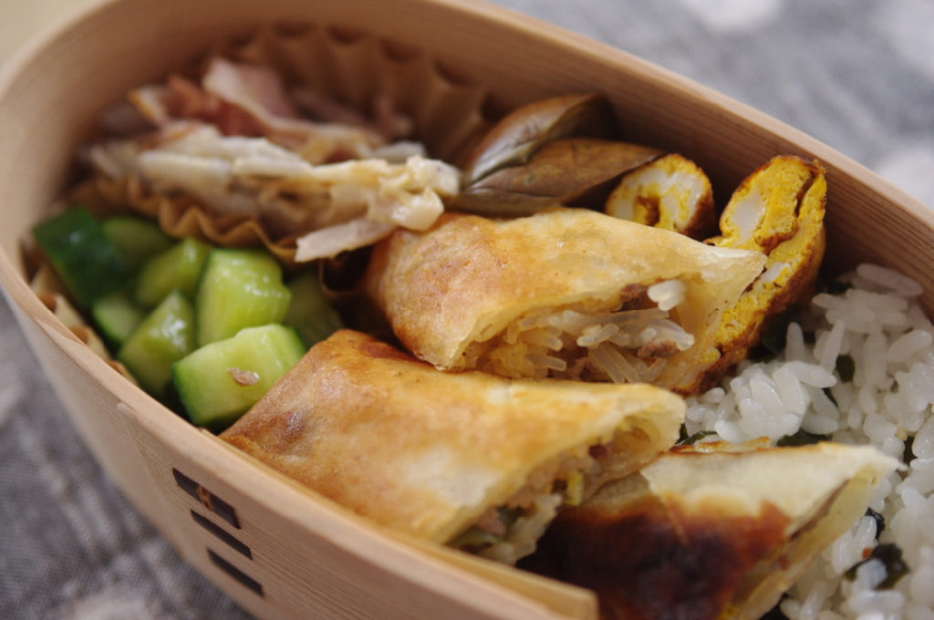 春巻きとれんこん炒めの曲げわっぱ弁当+こども弁当 - wappa。