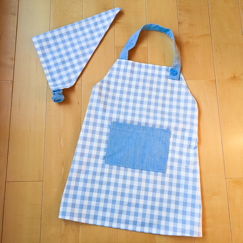キッズ エプロン ハンドメイド 子供用エプロンの作り方 90~100サイズ かぶるだけで簡単着脱。