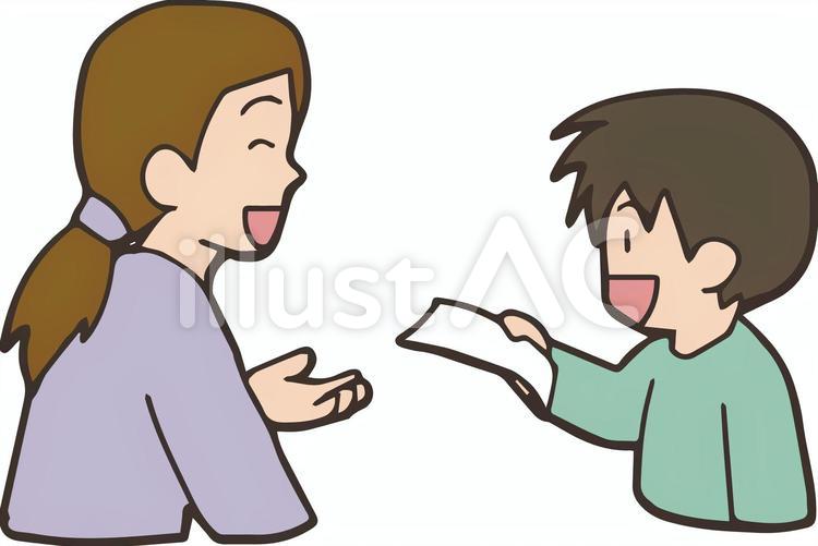 プリントを保護者に渡す子供手紙を見る母親 イラスト - No: 22822744無料イラスト・フリー素材なら「イラストAC」。