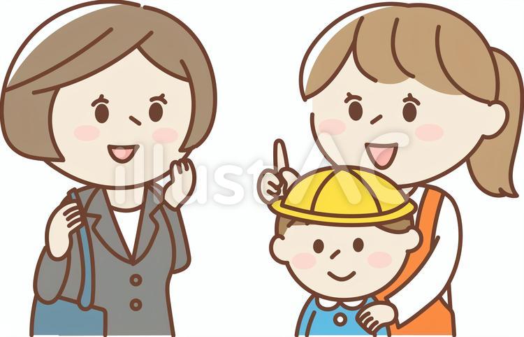 保育園にお迎えにきた保護者に笑顔で接する無料イラスト71074素材Good。