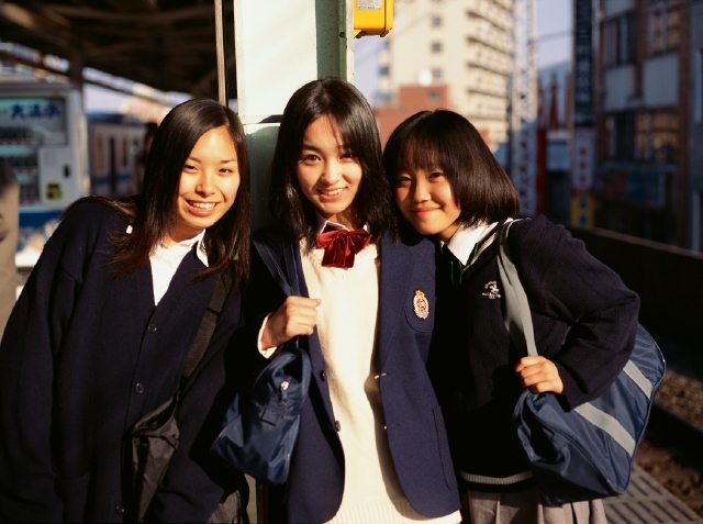 人物、日本人、高校生、学生、中学生、学生、屋外、3人、友達、仲間、友達、正面、上半身、ポートレート、女子高生 - フォト作品紹介イラスト&写真のストックフォトwaha ワーハ。