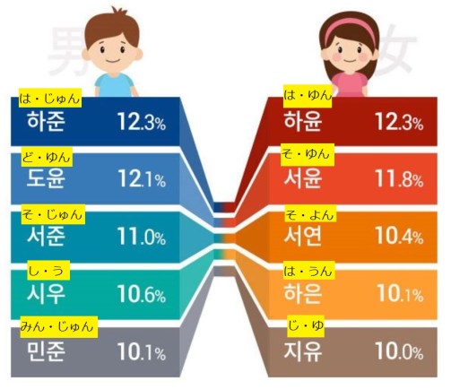 2022年最新 韓国で人気の名前・男女別ランキングトリリンガルのトミ韓国語講座:無料なのに有料以上。