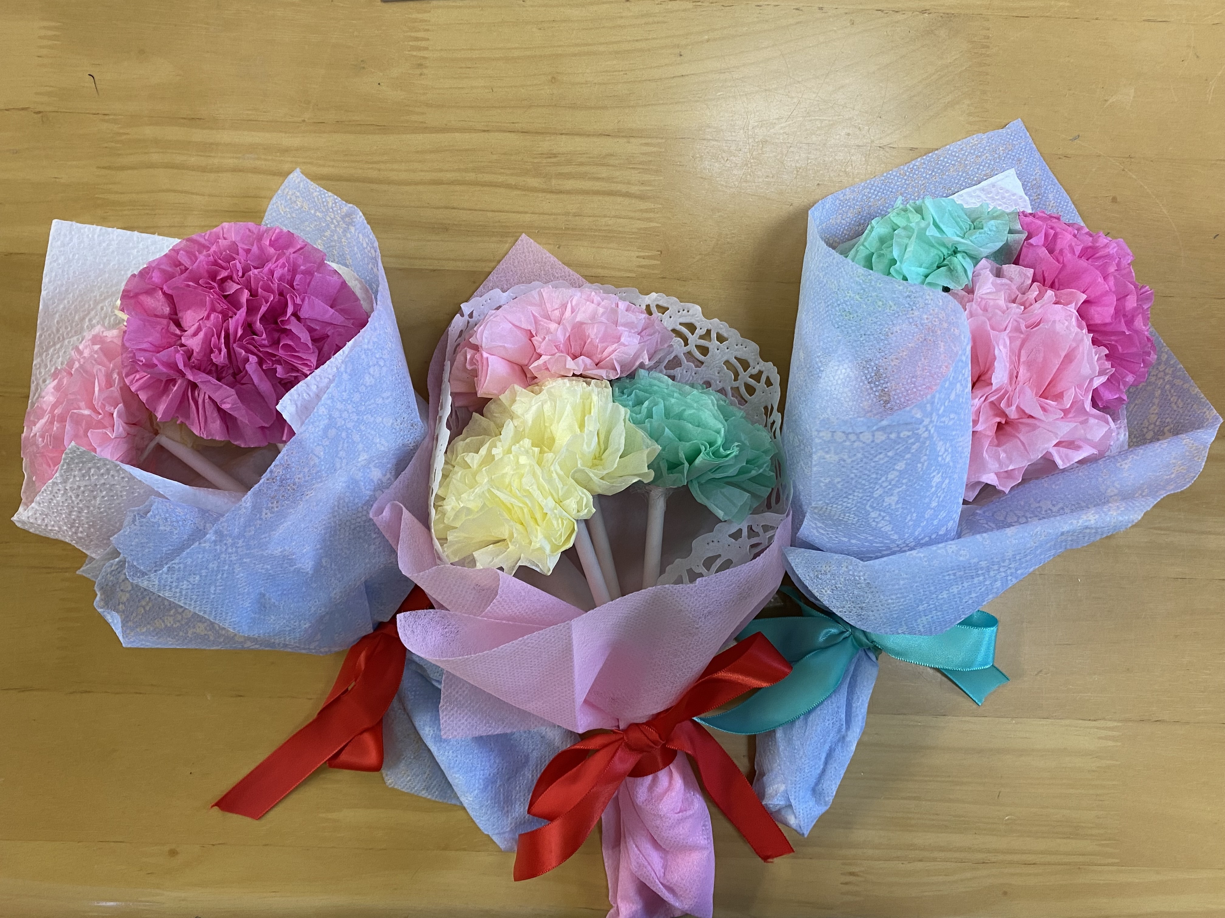 子どもの絵に飾る母の日ギフト おうち遊び母の日プレゼントペーパーフラワー 手作り工作。