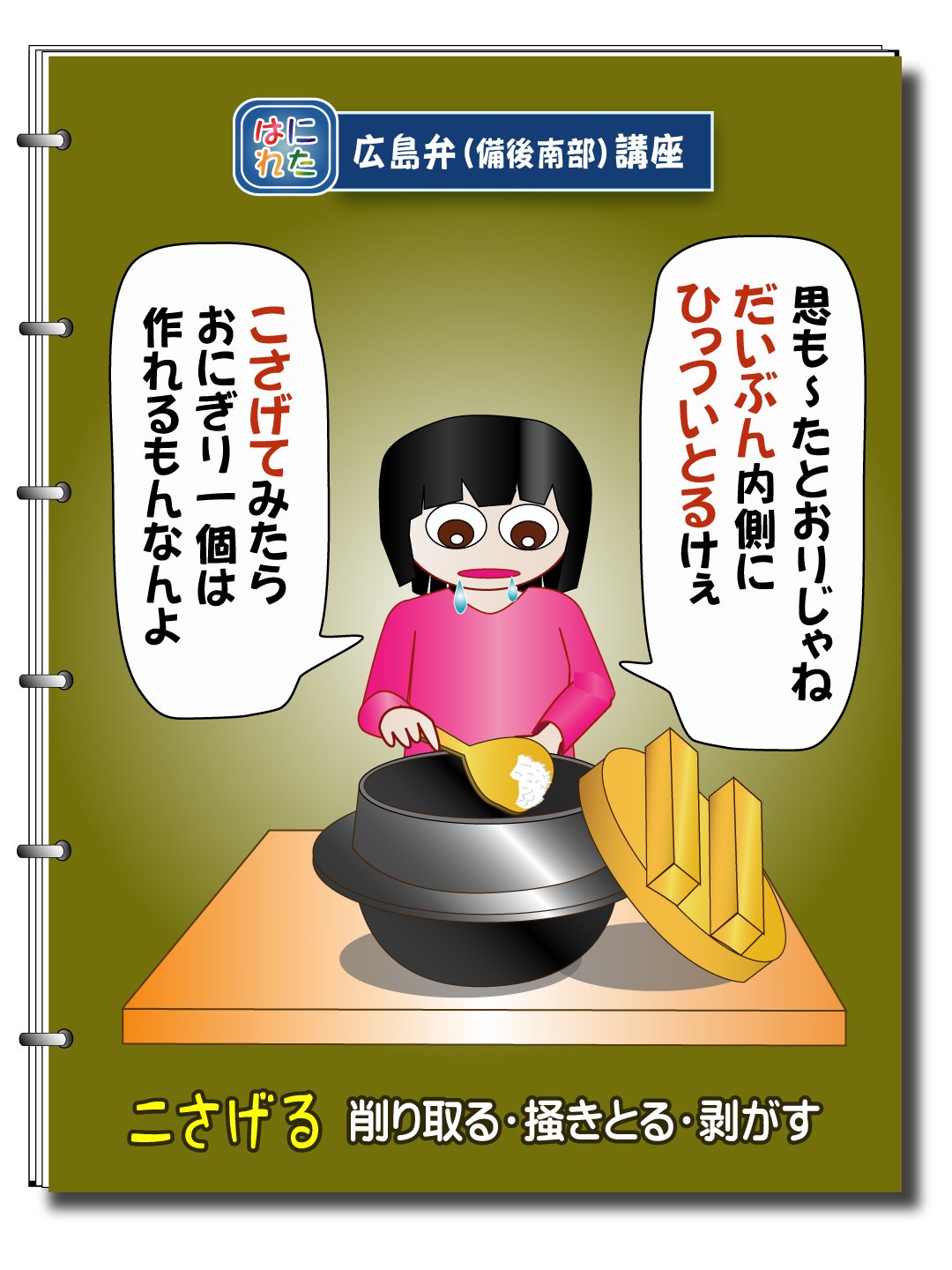 れたすはうす 任天堂バレーボールが世に出た本当の経緯を写真や画像を使い、創作者の私のHPで解説中。 on X: " 漫画はにれた 〚美しい広島弁講座〛今日の言葉『こさげる』 「削り取る、掻きとる、剥がす」 みたいな意味の言葉です。 検索すると、山口県、大分県、熊本。