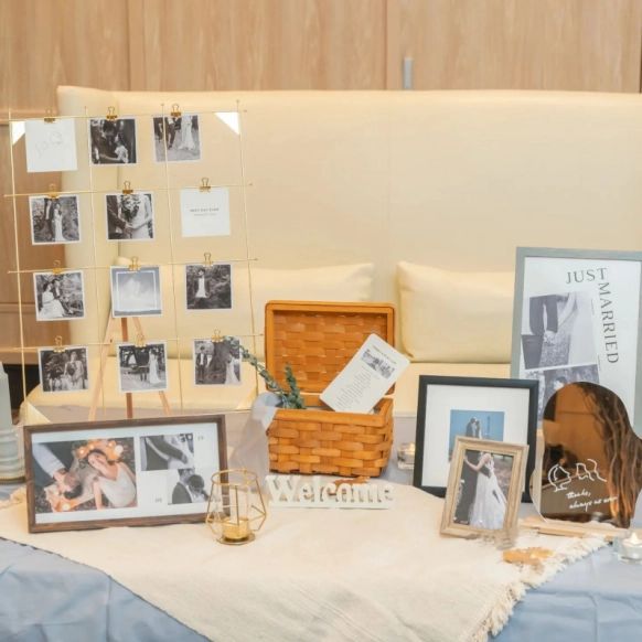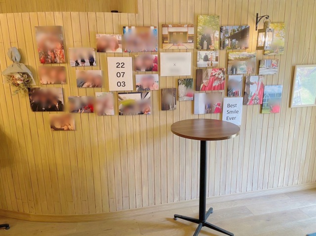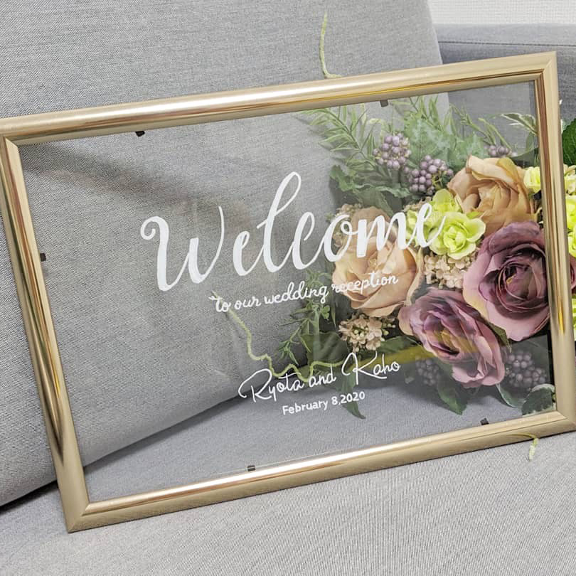 mzk on Instagram: “卒花嫁レポ-ウェルカムスペース- 写真はプリントして、セリアののり付き発泡スチロールに貼っただけ🪴簡単だったー🤍 ウェルカムミラーは、ほんまに苦戦した😤パワポでデザイン作成→ポスター使用で印刷→ カーボン用紙で下書き。