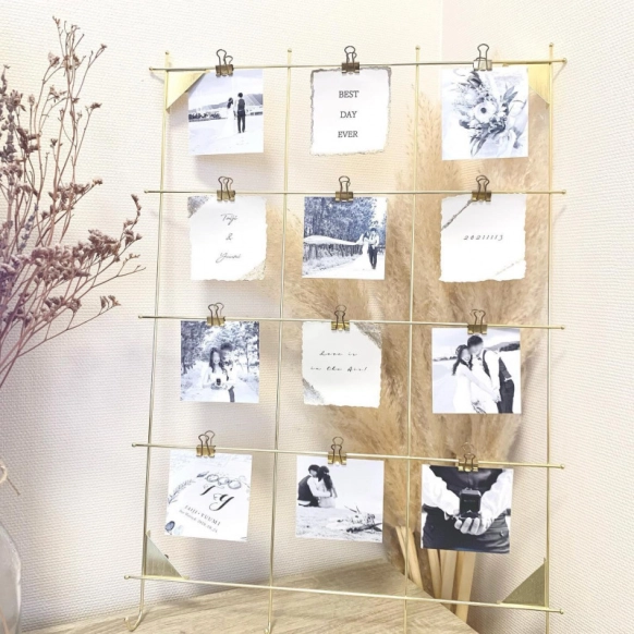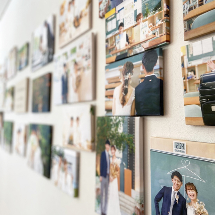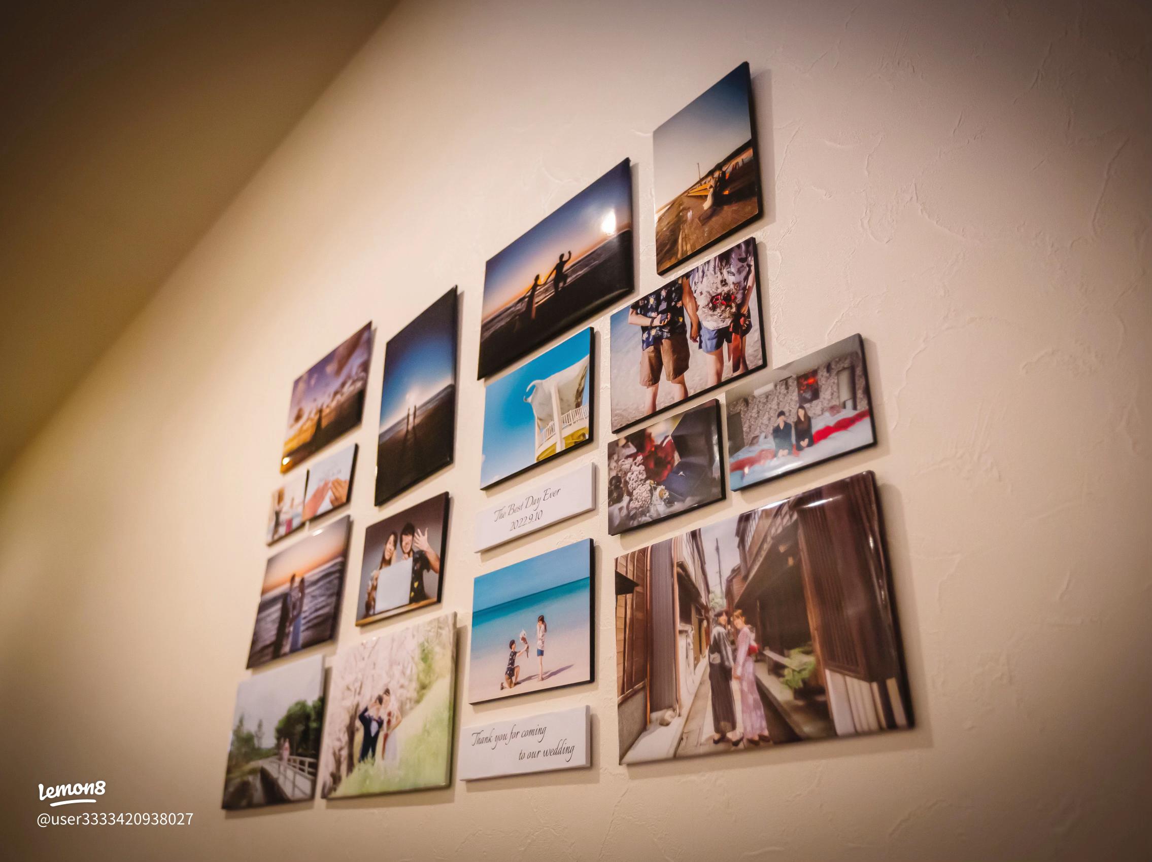 フォトパネルDIY📷 . セリアのA4サイズののり付きパネルに コンビニで光沢紙印刷した写真を貼り付けました! サイズ感ミスって貼りづらかった🥲パネルに対して紙の余白は十分にとることをおすすめします! . 質問があればコメント・DM待ってます☺️ .花嫁DIY 花嫁diy。