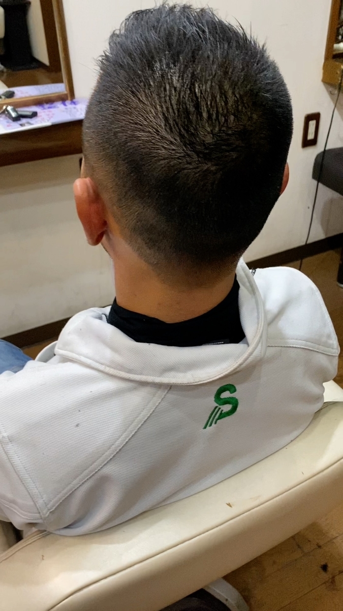 banshige@kreva_hair on X: "海兵みたいなボウズにして欲しいってことで、横2mm・上1.5cmのオシャレボウズにしました😁愛荘町美容室子供カットボウズ坊主 https:t.co RULKB7kctD"X。