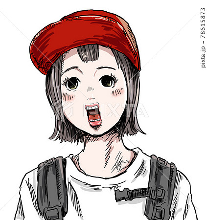 帽子とリュックの変顔してる女の子のイラスト素材78615873- PIXTA。