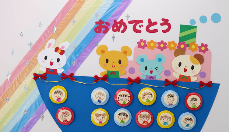 船に乗って新しい世界へ♪ 虹を渡って新しいクラスへ♪壁面ゆめかけの可愛い保育書・イラスト・壁面・似顔絵。
