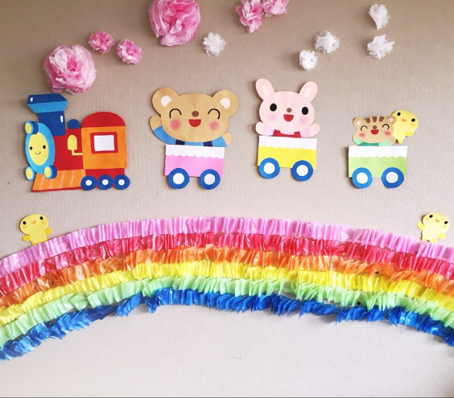 423壁面飾り壁面お誕生日おめでとう壁面電車壁面動物 雨の卒園。