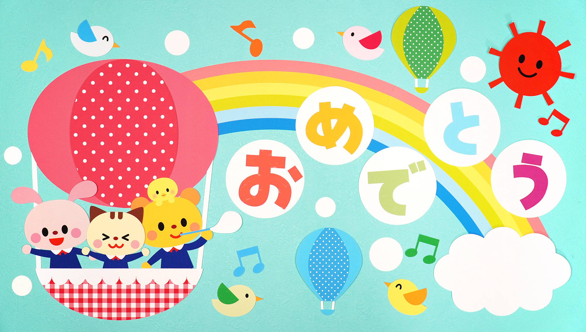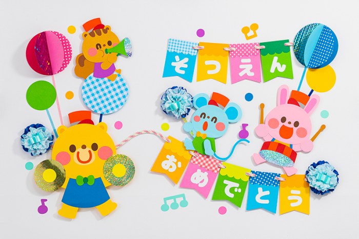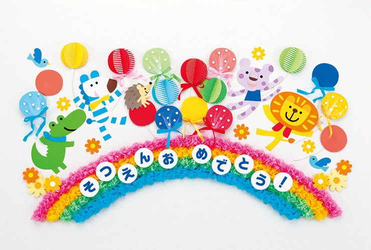 壁面飾り動物 卒園式飾り『動物たちと卒園お祝い』イラストレーター イシグロフミカ。