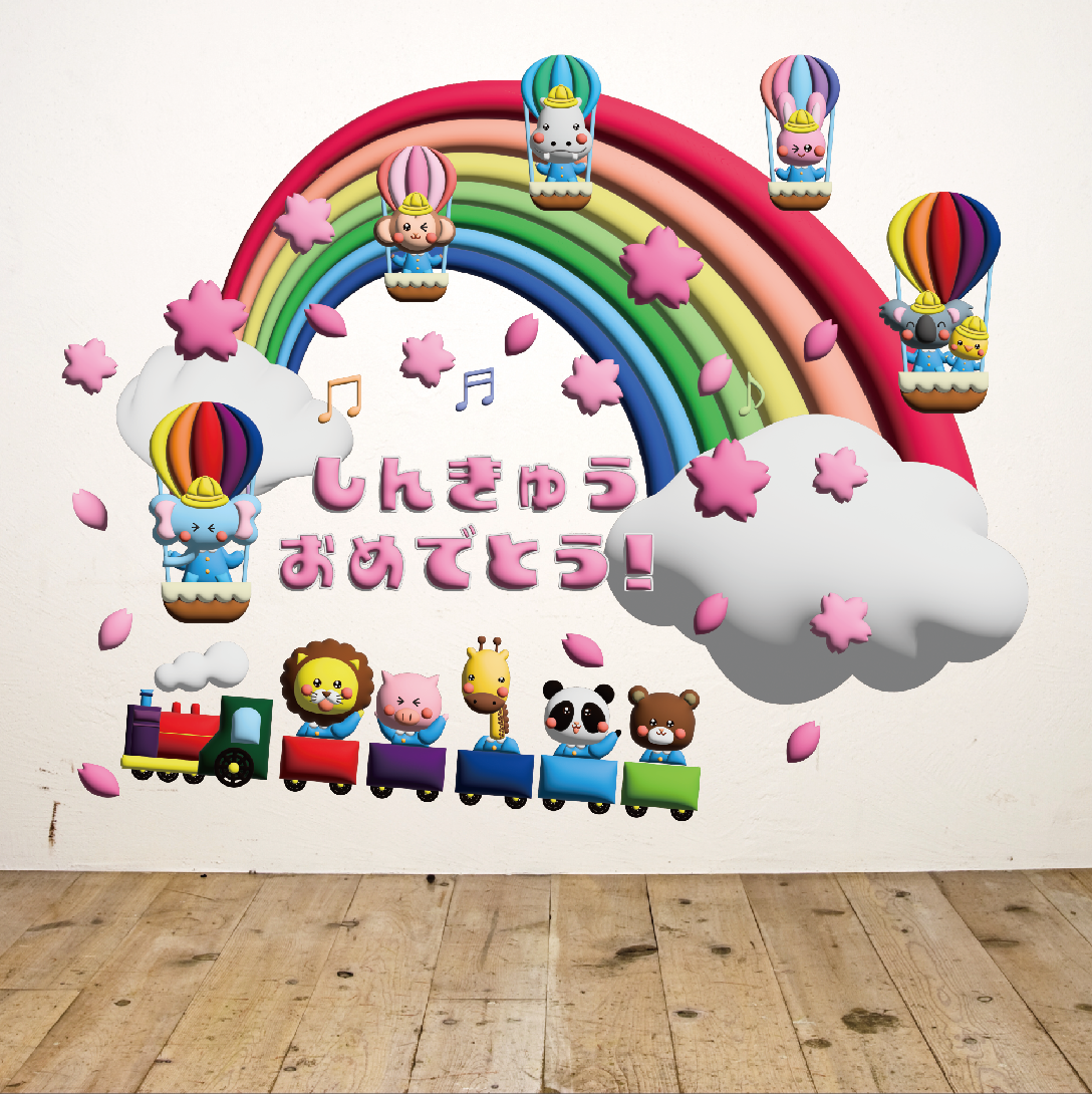 壁面飾りアニマル虹風船ラミネート一年中入園卒園進級新年度4月。