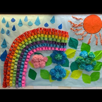 虹 壁面」のアイデア 29 件学校の飾り付け, 壁面 飾り, 教室のデコレーション。