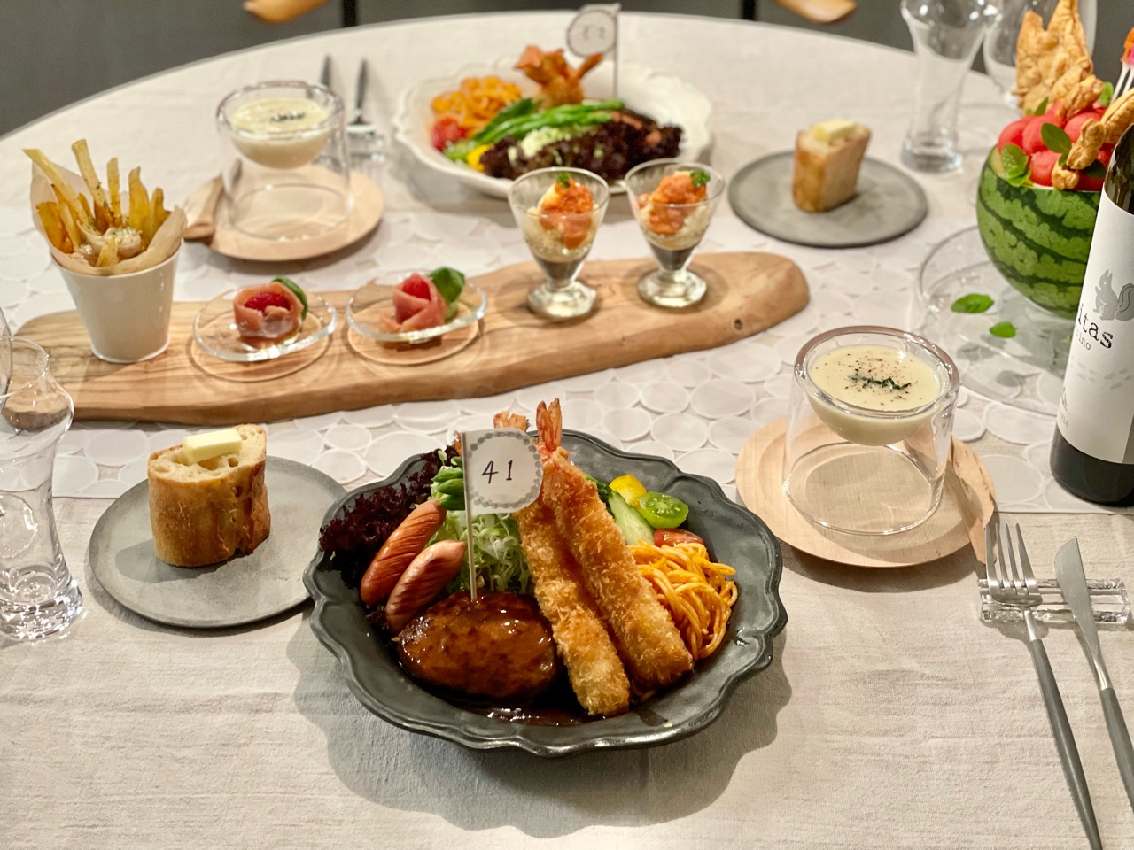 明日は誕生日なので夫が誕生日ランチ作ってくれた🥹💖, 私の好きなもの詰め込みメニュー💖, 全部美味しすぎた😭,おうちごはんごはん記録晩御飯 晩御飯の献立 ごはん日記ご飯が進むおかず 食器好き 料理人旦那の激うまごはん料理人 おうちディナー 記念日ごはん お家ご飯記念日ディナー 誕生日ディナー 誕生日ランチ。
