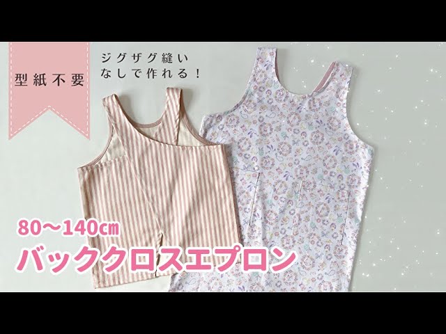 型紙なしで作る 子ども用バッククロスエプロンの作り方80~140㎝ 着脱が簡単。