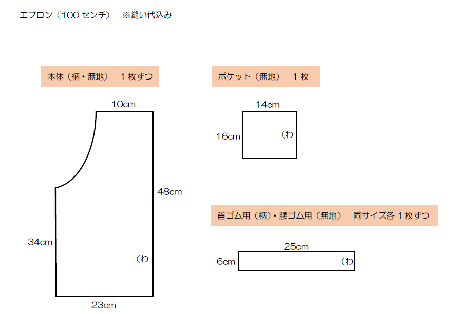 オリジナル型紙 簡単シンプルな子ども用エプロンの作り方 - 縫いナビ 生地のマルイシ。