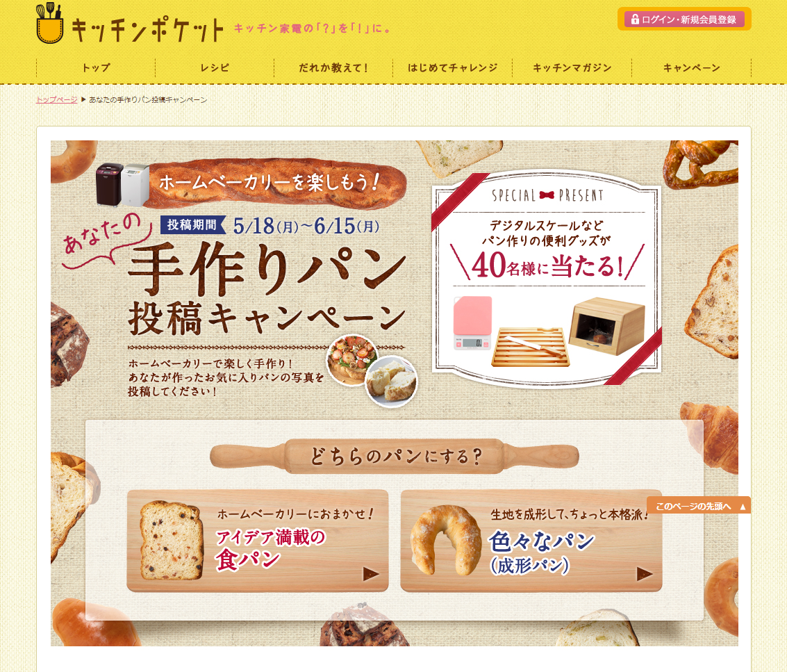 ホームベーカリーご愛用者さま向け 手作りパンの写真投稿キャンペーンをスタート!@キッチン家電のコミュニティサイト「キッチンポケット」イベント・キャンペーンイベント・スポンサー活動トピックスPanasonic Newsroom Japan : パナソニック ニュース。