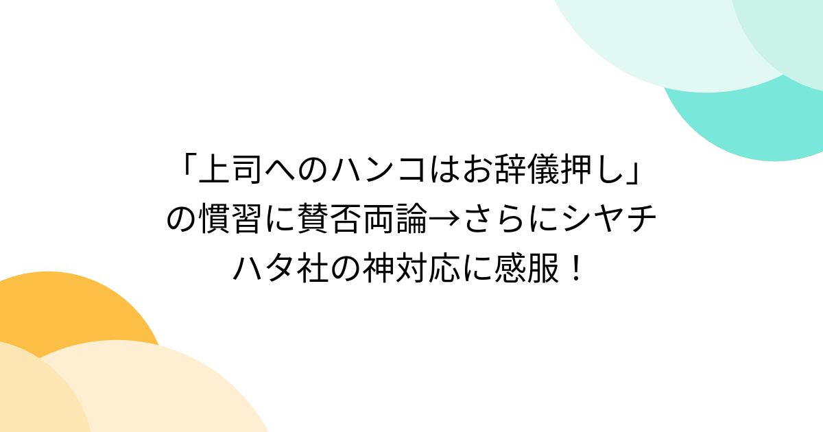 上司へのハンコはお辞儀押し」の慣習に賛否両論→さらにシヤチハタ社の神対応に感服! - Togetter。