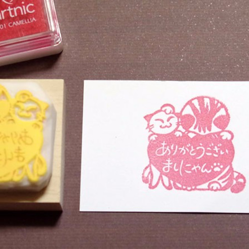 ありがとうございましにゃん」お辞儀ネコの消しゴムはんこ 持ち手付きはんこ・スタンプ かめたん 通販 1531096Creema クリーマ。