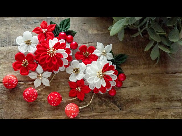 今年もまだ間に合う!七五三、成人式の髪飾り つまみ細工 作り方 diy ハンドメイド How to make of the hairornament kanzasi flower - YouTube。