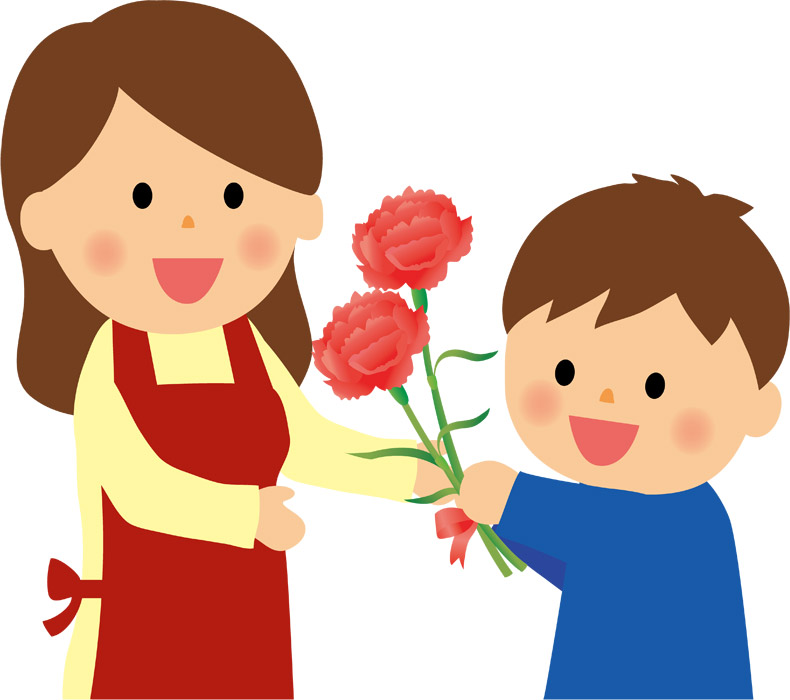 息子から花束を受け取るお母さんのイラスト高品質の無料イラスト素材集のイラサポフリ。