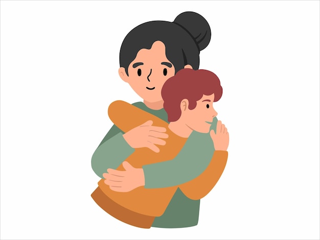 手描きの母が息子を抱き締めるイラストPremiumベクトル素材。