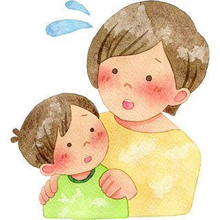 子供を心配する母親の水彩イラスト水彩の挿し絵屋さん。