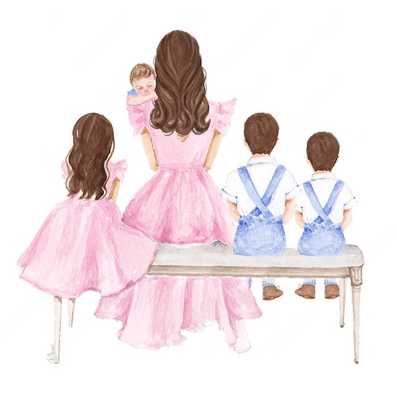 母と息子と娘の赤ちゃんのイラスト - 母の日 - 母と子供のプリント - ファッションイラスト - デジタルダウンロード - Etsy 日本。