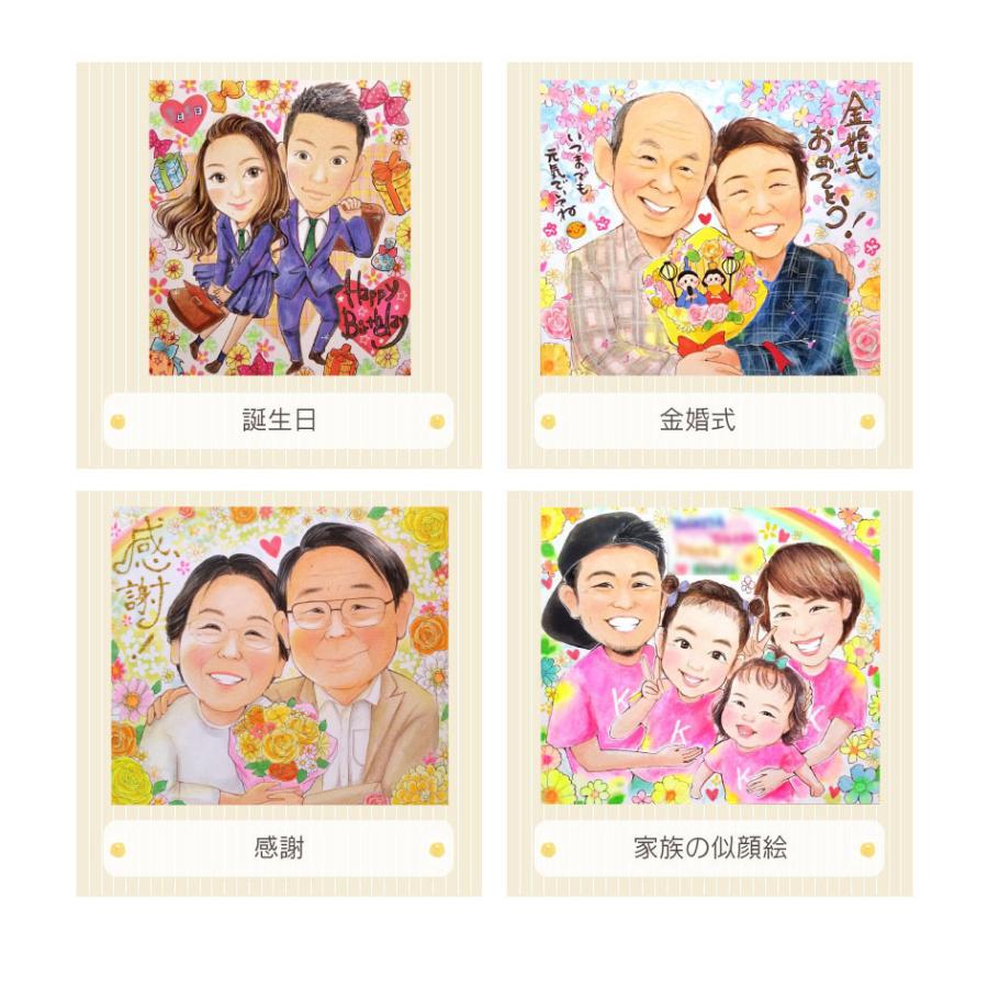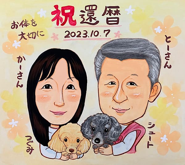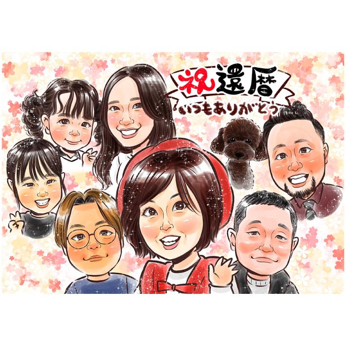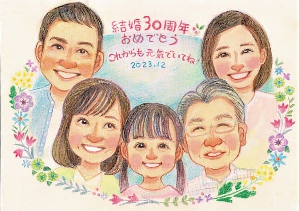 楽天市場家族の絆を形に似顔絵ギフト 特別な日の思い出を彩る! キラふわタッチ プロの似顔絵師が手掛けるオリジナル家族似顔絵 還暦 古希喜寿 傘寿 米寿 金婚式 銀婚式 誕生日 結婚記念日 敬老の日に最適! 上月 : 似顔絵 プレゼント・アート。