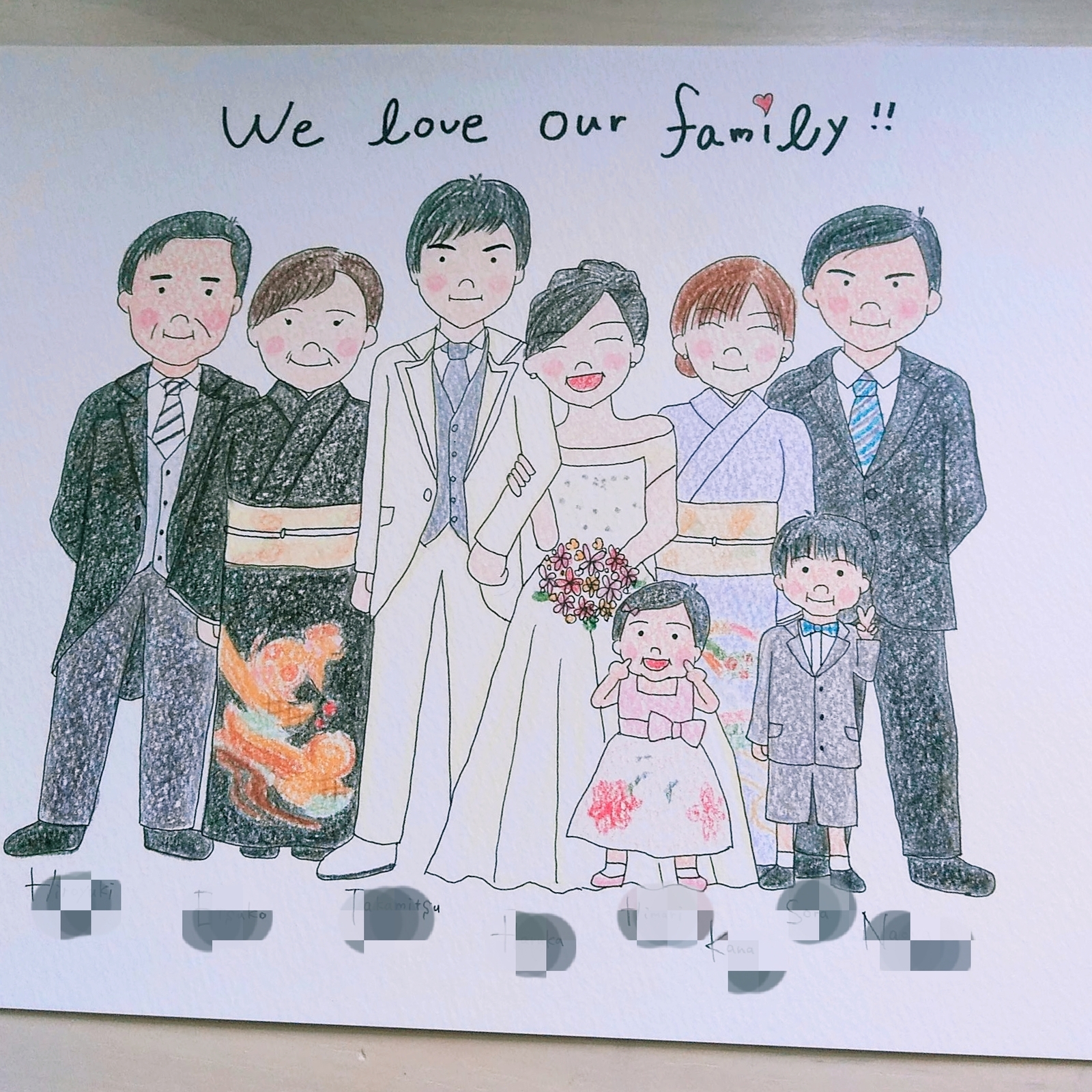 ご家族似顔絵*\ ^o^*似顔絵イラスト誕生日家族family似顔絵似顔絵オーダーウェルカムボードイラストillustrationillustratorminneminneで販売中SNA2似顔絵。