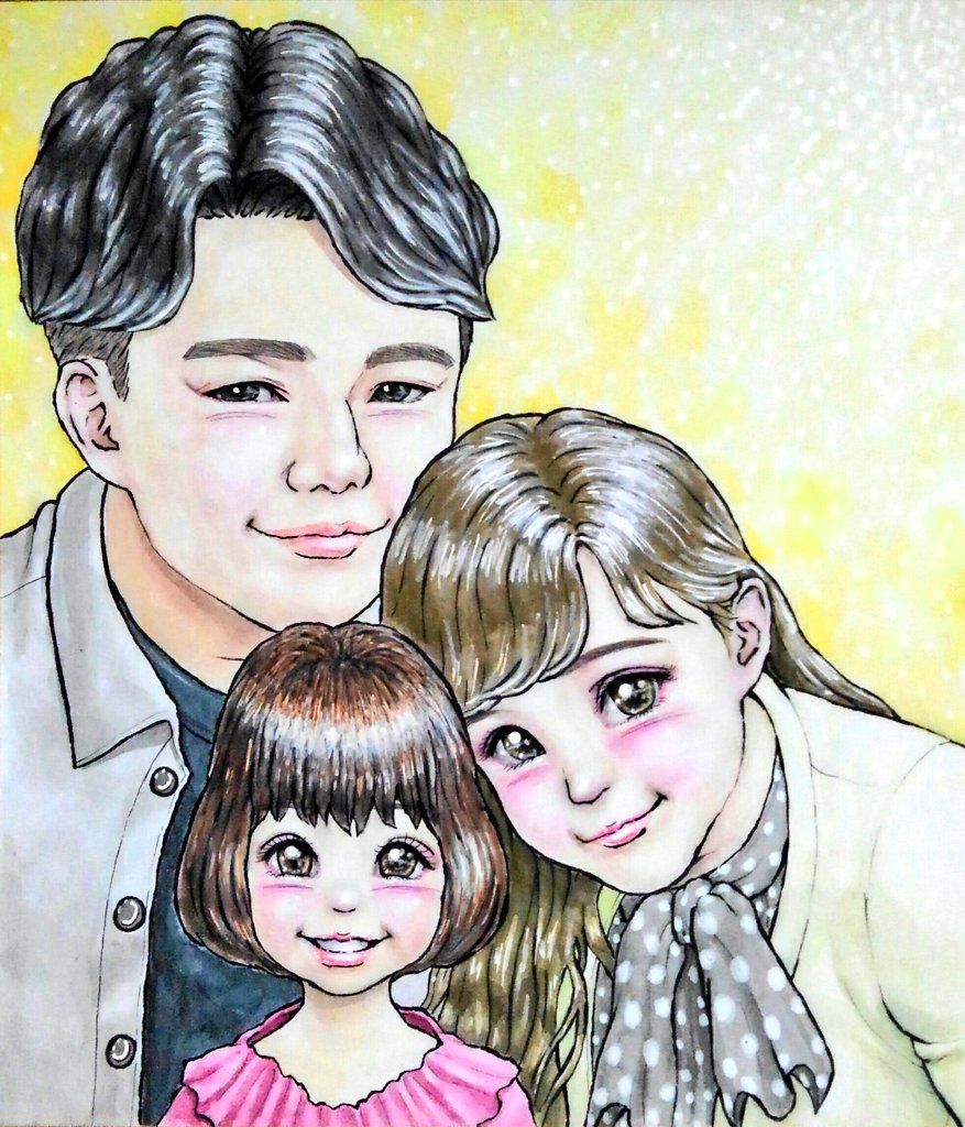 ✨家族似顔絵シリーズ✨ 第3弾☺️✨ こちらは写真を送って いただきました✨ 高校の時からの自慢の友達🥰 無知な私に色々な可愛い素敵な世界を教えてくれたのは彼女で 何よりも努力家✨ 昔も今も憧れの存在😊 似顔絵を描かせていただいてありがとう😊家族似顔絵。