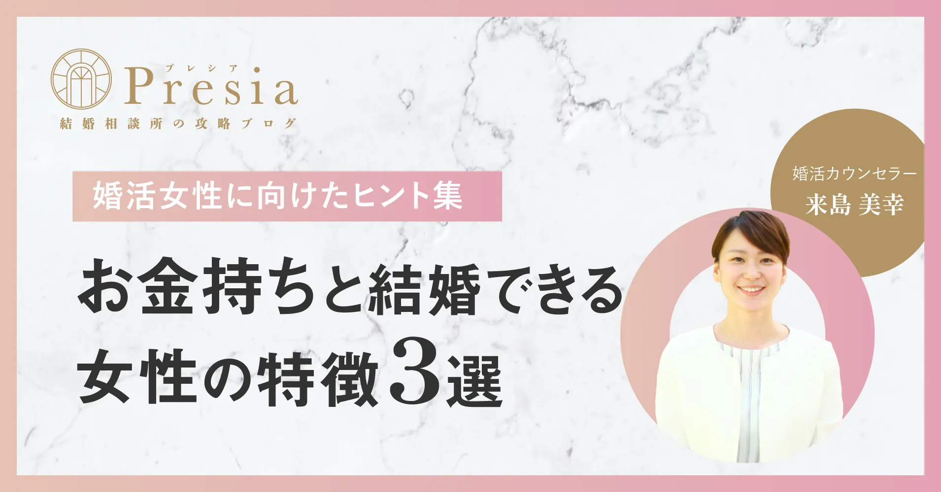 お金持ちの男性と結婚する女性の5つの特徴若い・綺麗は重要ではない理由を解説高収入の男性戦略とサポートで成婚へ導く結婚相談所「イノセント」。