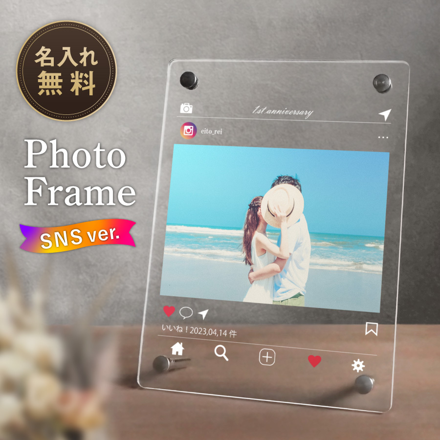 ギフトラッピング無料名入れ無料 送料無料 フォトフレーム インスタ風 Instagram風 フレーム インスタグラム ユニーク 縦置き 横置きSNS 写真立て 写真たて 写真入れ 名入れ 名前入り 文字入れ おしゃれ メモリアル フォト フォトスタンド アクリル ギフト。