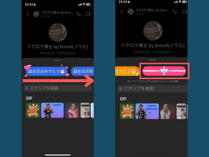 インスタグラム DMで「ギフトメッセージ」を送る方法は?knowl。