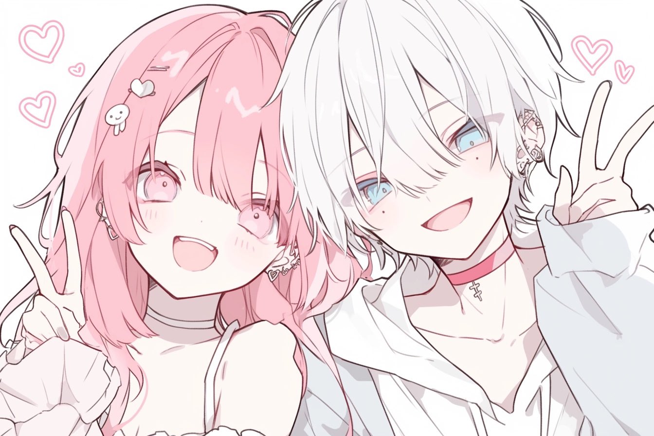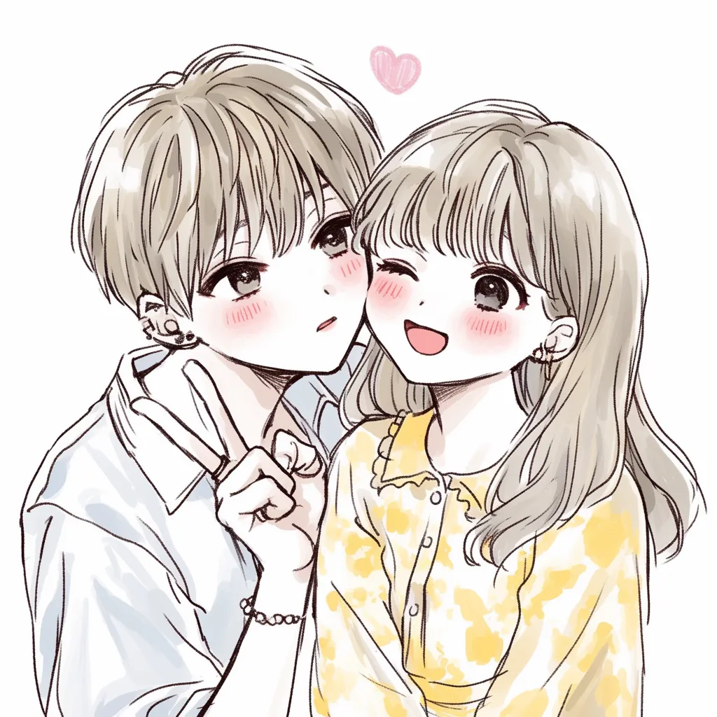 可愛らしいペア画イラスト集 - あなたの心をつかむアート🥰。