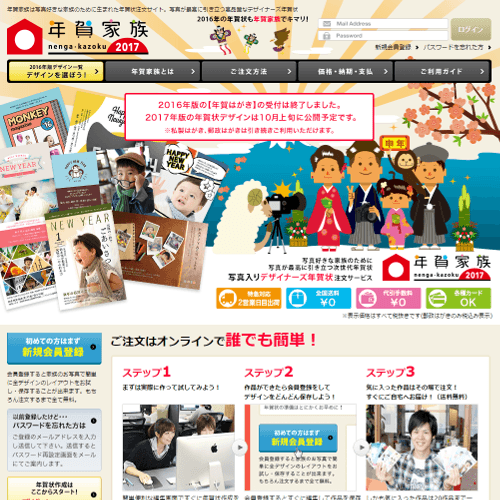 年賀家族の口コミ・評判&クーポン。センス抜群の年賀状が簡単に作れる!フォトブック&年賀状印刷No.1。