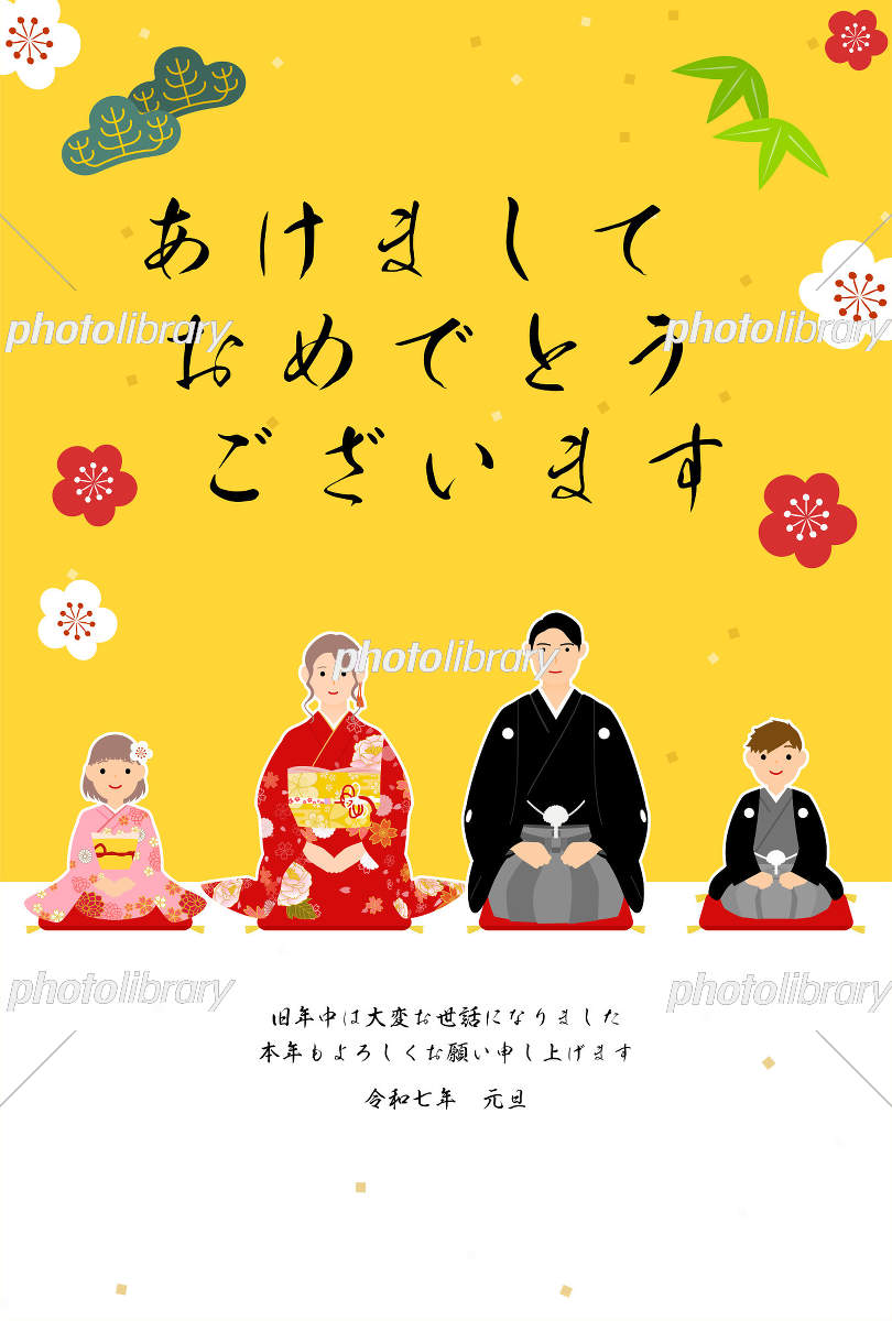 2025年年賀状 着物で年始の挨拶をする家族 イラスト素材7504185- フォトライブラリ。