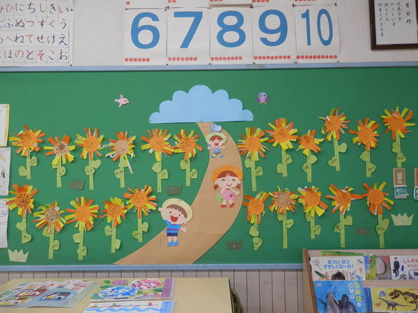 手作りスタンプのひまわり畑 製作壁面 保育士・幼稚園教諭のための情報メディア ほいくis ほいくいず。