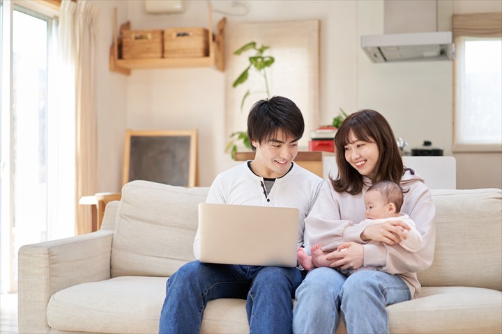 リビングで団らんする若い家族の写真素材61063607- PIXTA。