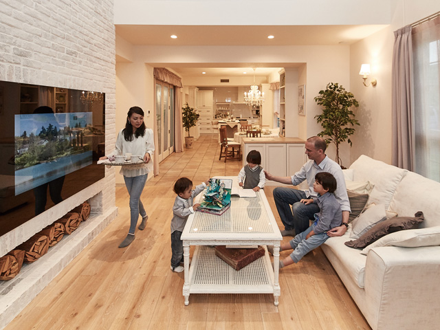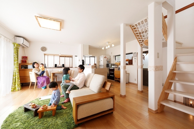 広く開放感のあるリビングに家族が集う。いつでも子供達を見守ることができる家。注文住宅オーナー様の声住宅情報館。