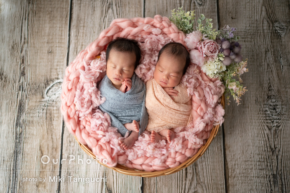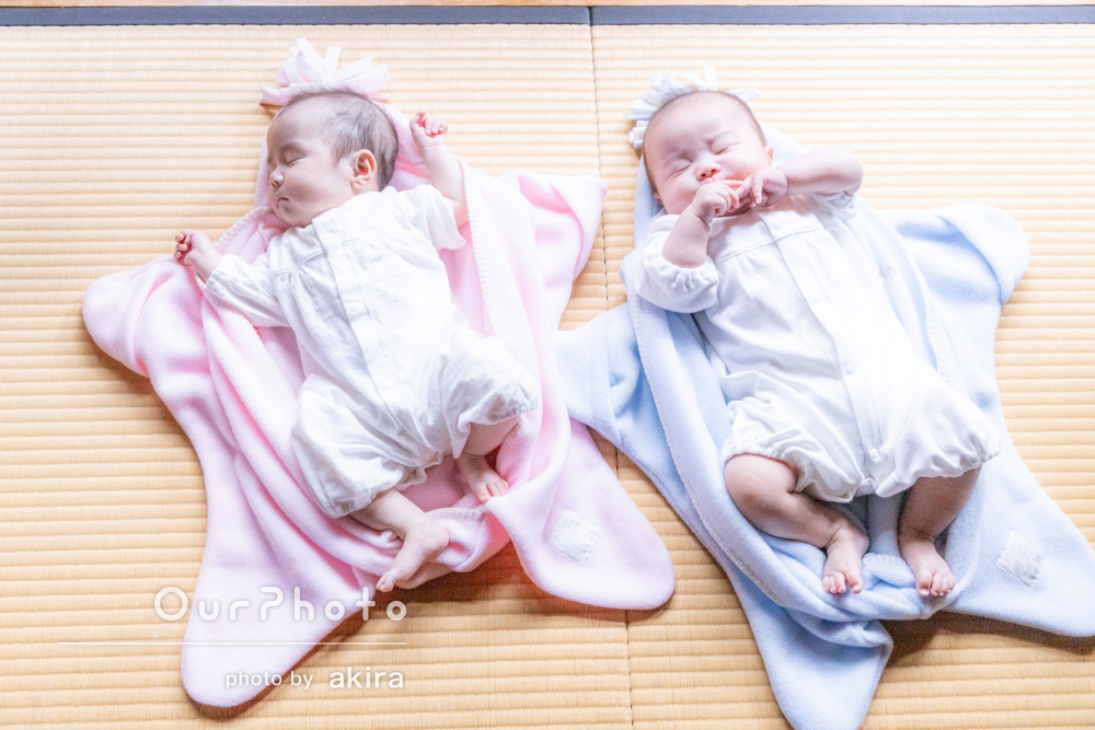 安心してお任せ」新生児の男女の双子ちゃんのニューボーンフォトを撮影OurPhoto アワーフォト。