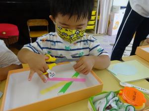 七夕かざりの制作 2歳 ・八町通-愛知県一宮市 小規模認可保育所 ピョン助キッズハウス。