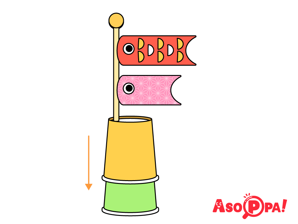 こどもの日 紙コップで簡単にできる手作りおもちゃ「こいのぼりけん玉」-工作 ASOPPA!レシピ - あそっぱ。