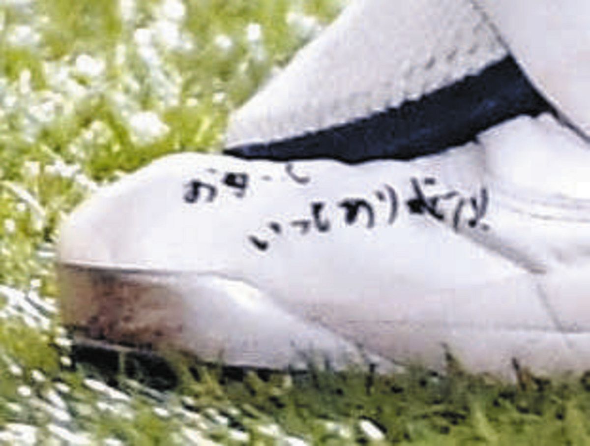 ◇ヤクルト・村上宗隆、スパイクに母への感謝のメッセージ 写真 :中日スポーツ・東京中日スポーツ。