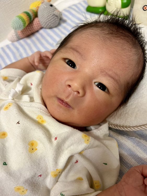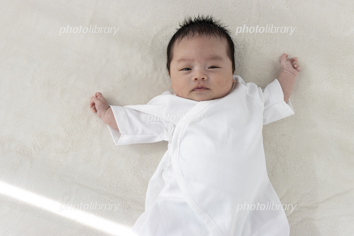 起きている赤ちゃんの上半身 0歳1か月 日本人 男の子写真素材7350418- フォトライブラリ。