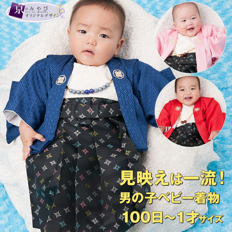 男の子ベビー着物 羽織袴セット 100日-1才70cm前後一体型 群青 ピンク 初節句 端午の節句 こどもの日 子供の日 お正月着付けかんたん 衣装 衣裳 赤ちゃんベビー,ベビー着物京のみやび 本店。