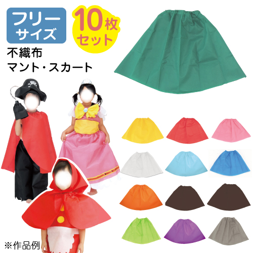 保育のカタログ保育事業者向け 衣装ベース マント・スカート 10枚セットフリーサイズ:幼児〜大人 加工簡単 軽くて丈夫 不織布ミシン不要 素材貼付可 コスチューム お遊戯会 演劇 発表会 運動会 イベント ダンス 祭り ハロウィン 手作り衣装 生地 保育園。